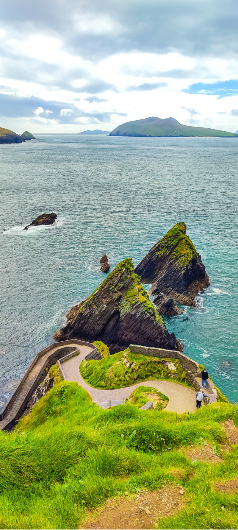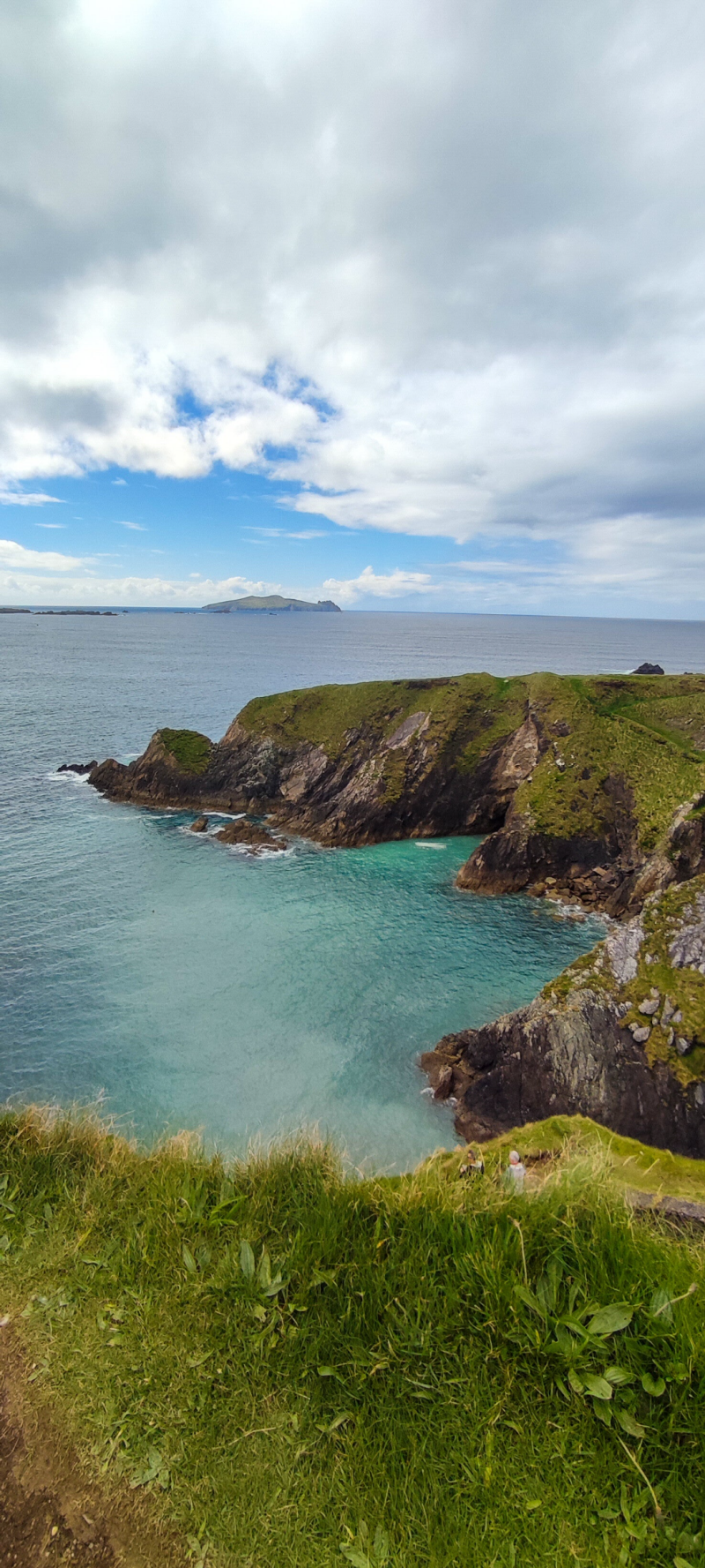 Tout au bout de la péninsule, nous sommes allés admirer les Dunquin Pier. Ces énormes rochers en pointe fracassés par les vagues avec en toile de fond les Great Blasket Island offre un panorma incroyable digne d'un décor de film. D'ailleurs des scènes du film Star Wars : Le Dernier Jedi ont été tourné dans cette région. On pourrait rester des heures à admirer ce paysage tellement vert et sauvage.