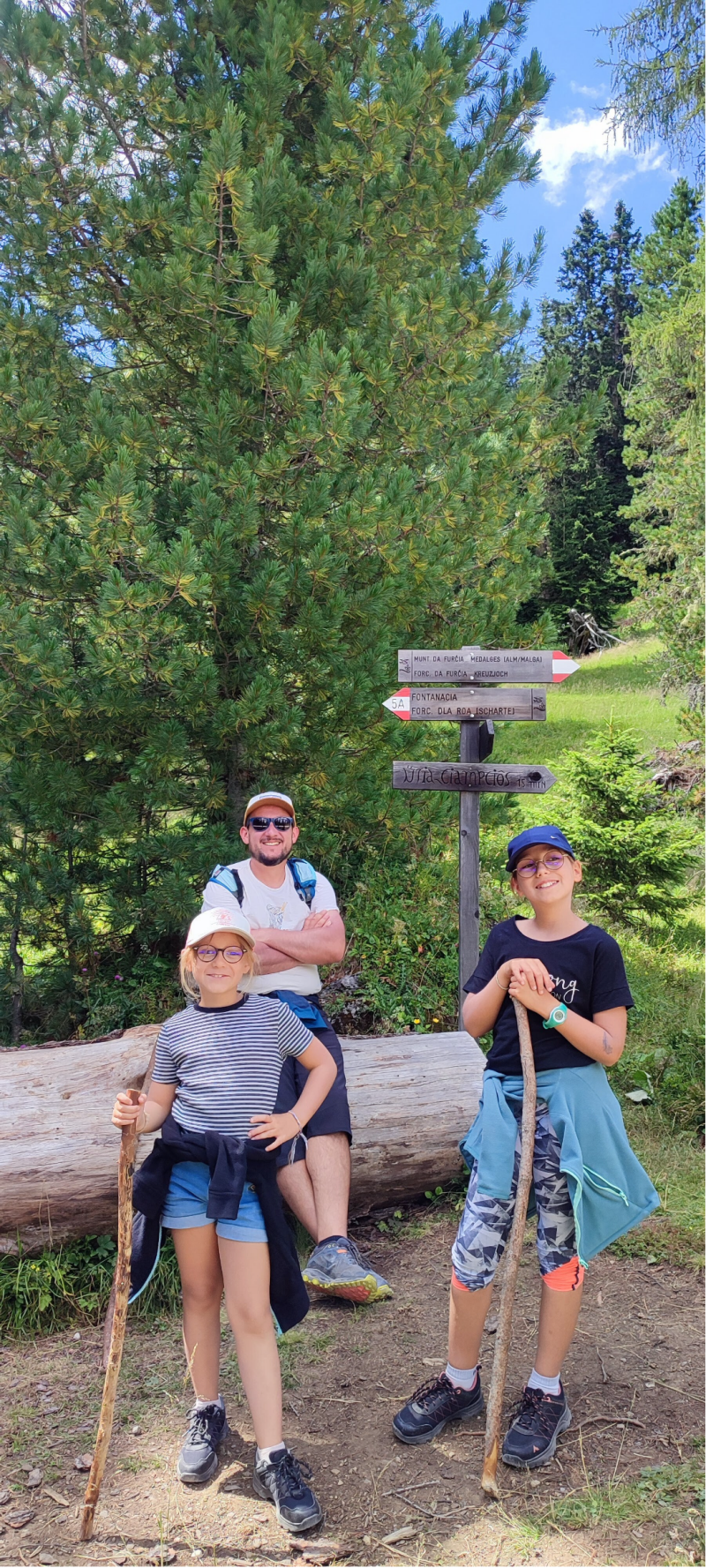 La gérante du camping nous conseille une randonnée au départ du camping. La randonnée de Utia Ciampcios : environ 10 km et 500 D+. Le parcours est adapté aux enfants et le trajet offre des panoramas exceptionnels. Très peu de monde sur cette randonnée, on profite pleinement du paysage, on rencontre des vaches en alpage et des petits écureuils qui se baladent.